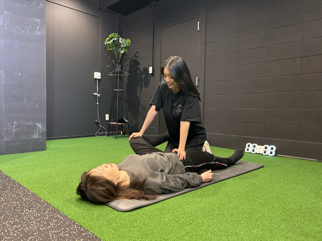 当ジムのトレーニングは、ストレッチとセットが基本です。トレーナーが筋肉の反射を利用しながら伸ばすので、自分では届かない柔軟性まで到達できます。鍛えて、ストレッチでほぐす、この両方があるから翌日に疲れを残しません。